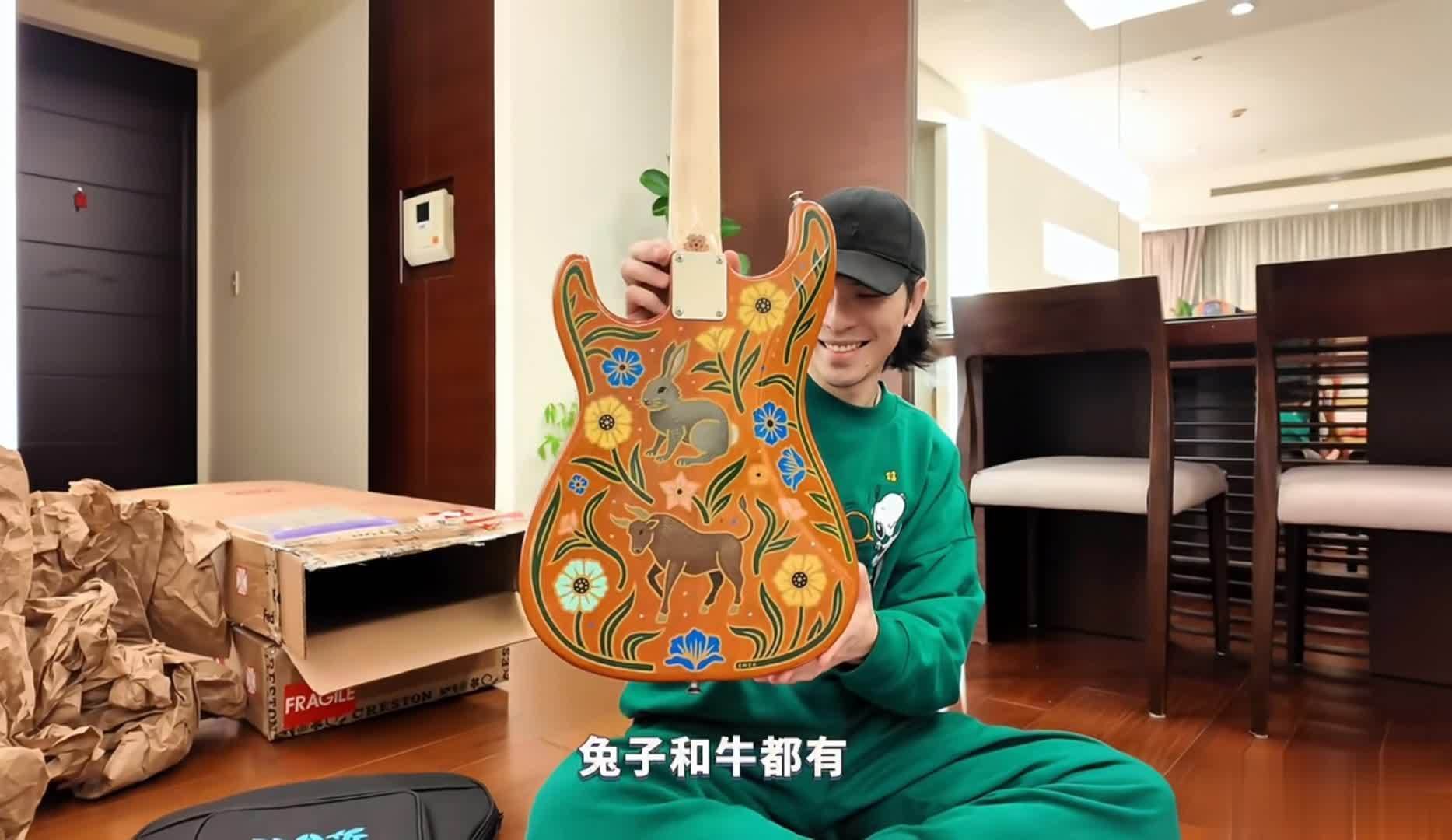 此次他在网上结识了自己极为欣赏的吉他制作大师,于是特意花费重金从美国订购了三把电吉他。在沟通设计需求时,还特地让老婆精准翻译自己的想法。