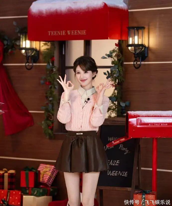直播间名场面:甜妹的松弛感,比精修还圈粉作为品牌代言人,赵露思在直播间完全没有紧绷感,全程笑意盈盈,把 “心愿派发官” 的暖意拿捏得死死的。和粉丝互动时,会对着镜头比心,抬手整理头发的瞬间,针织衫的软糯和盘发的精致形成反差,生图里皮肤透亮,状态好到发光。